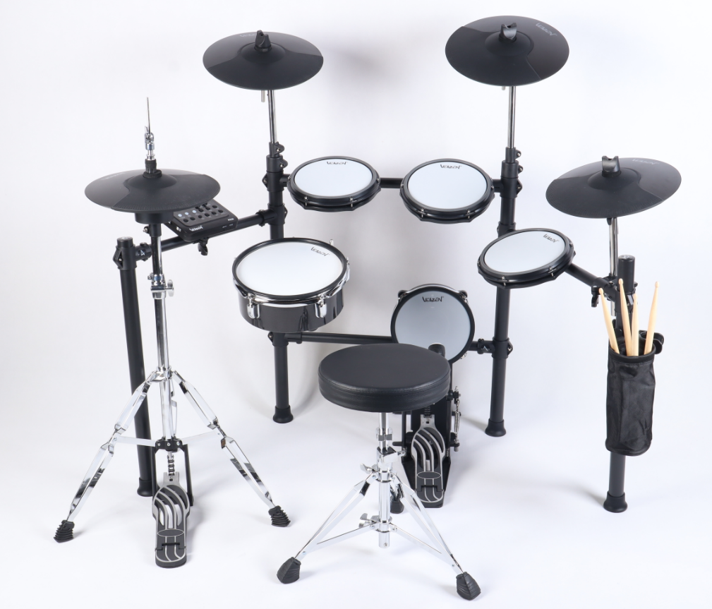 - VEAZEN 费森 PD30(3280元):5鼓4镲,加厚双层网面(张力可调),独立踩镲,内置500+音色,支持录音/教练模式,十年质保 | 一句话速记:考级适配款,手感专业,一步到位不换鼓。