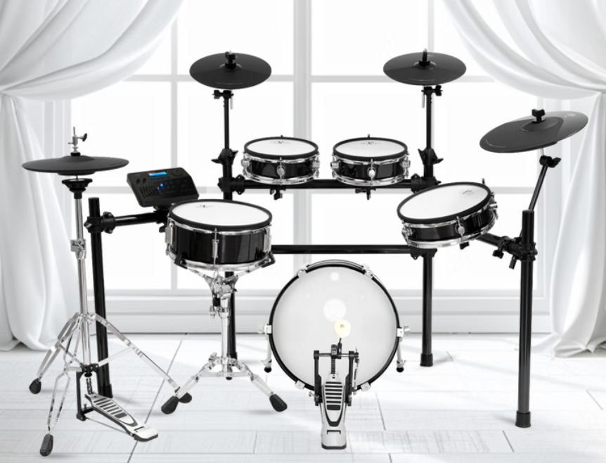 成人进阶款,操作便捷,开放专业参数自定义,可根据个人发力习惯调整,适合成人零基础进阶练琴。内置254种无损音色,支持全数字音频总线直输,录音便捷,核心金属骨架十年质保,静音效果出色,家用和小型演出都适配,长期练鼓不落后。